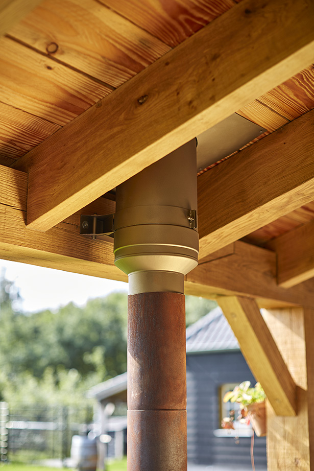 Der QUARUBA L wird mit 1x Abzugsrohr Ø 150x2 L=1000mm, 1x Abzugsrohr Ø 150x2 L=1000mm + Rauchgaszug Drosselklappe, Glas-Scheibenspühlung oben und einer inklusiven Regenschutzkappe geliefert.