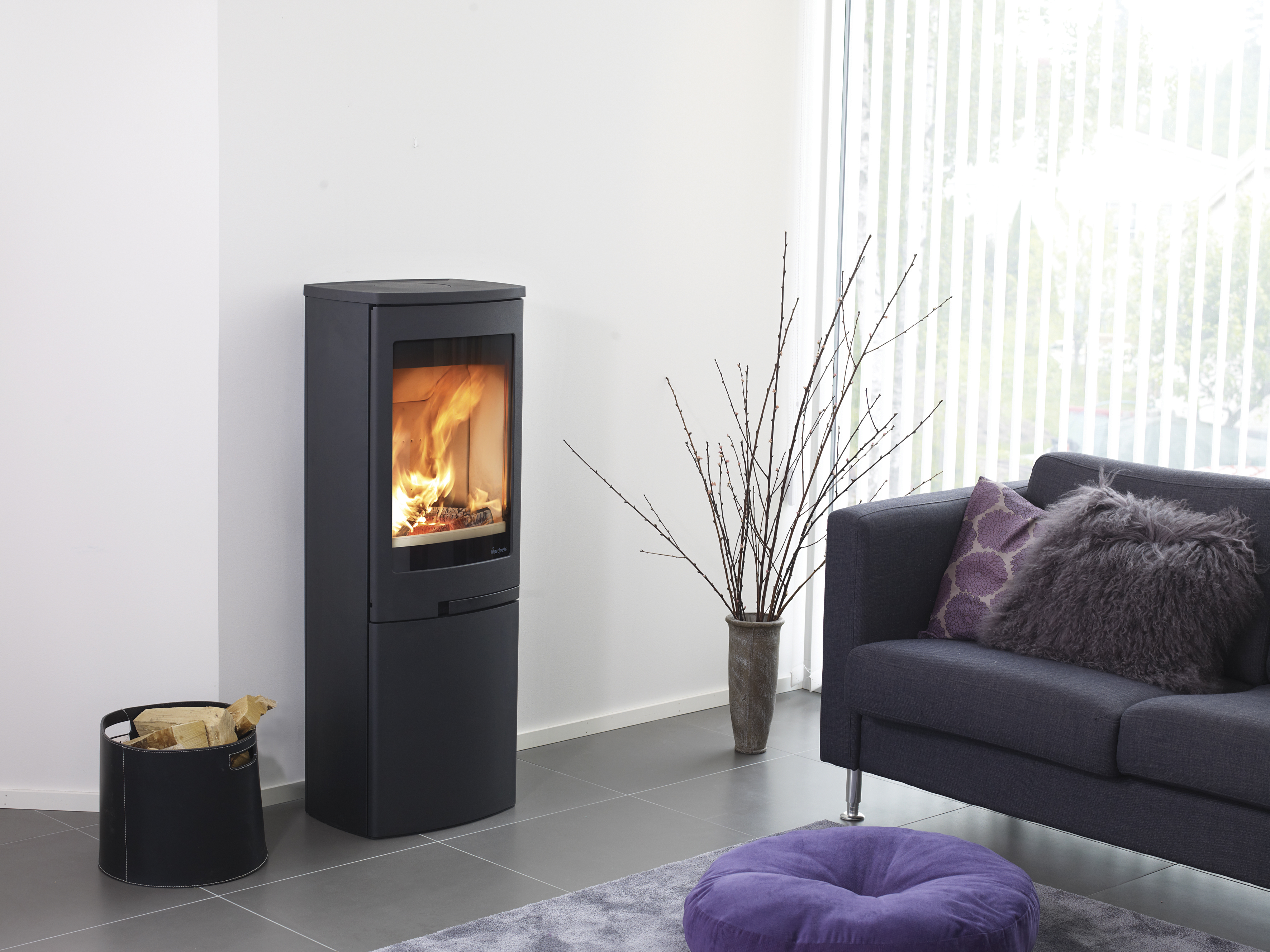 Eleganter und moderner Kaminofen, welcher sich auch gut für eine Eckplatzierung eignet. Durch die Seitenscheiben hat man eine gute Sicht auf das Flammenspiel. Als Zubehör sind eine Aschebox und eine Vorlegeplatte erhältlich.