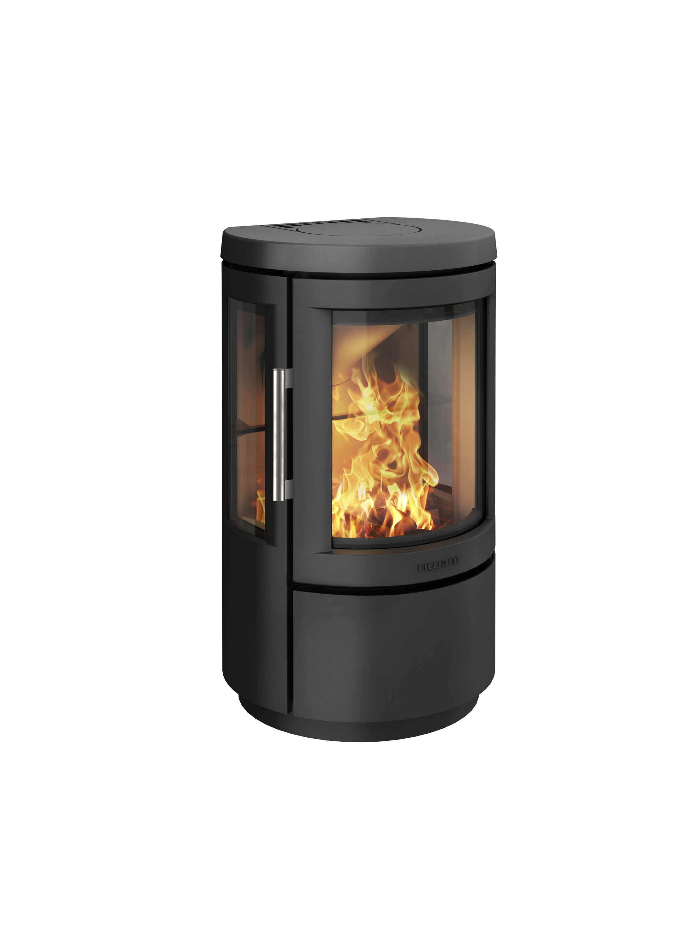 Kleiner moderner Kaminofen, welcher durch die zwei Seitenfenster eine wunderbare Sicht auf das Flammenspiel ermöglicht. Konvektionsofen mit mechanischer Verbrennungsautomatik. Erhältlich ist dieses Modell als Standmodell, mit niedrigem Sockel oder auf einem Säulenfuß. Optional kann der kleine Kaminofen auch an einer Wand aufgehangen werden. Wählbar in der Classic Variante (c) mit einer Gusseisenrahmentür oder in der modernen Variante (m) mit einer großen Glastür für einen modernen und leichten Ausdruck.