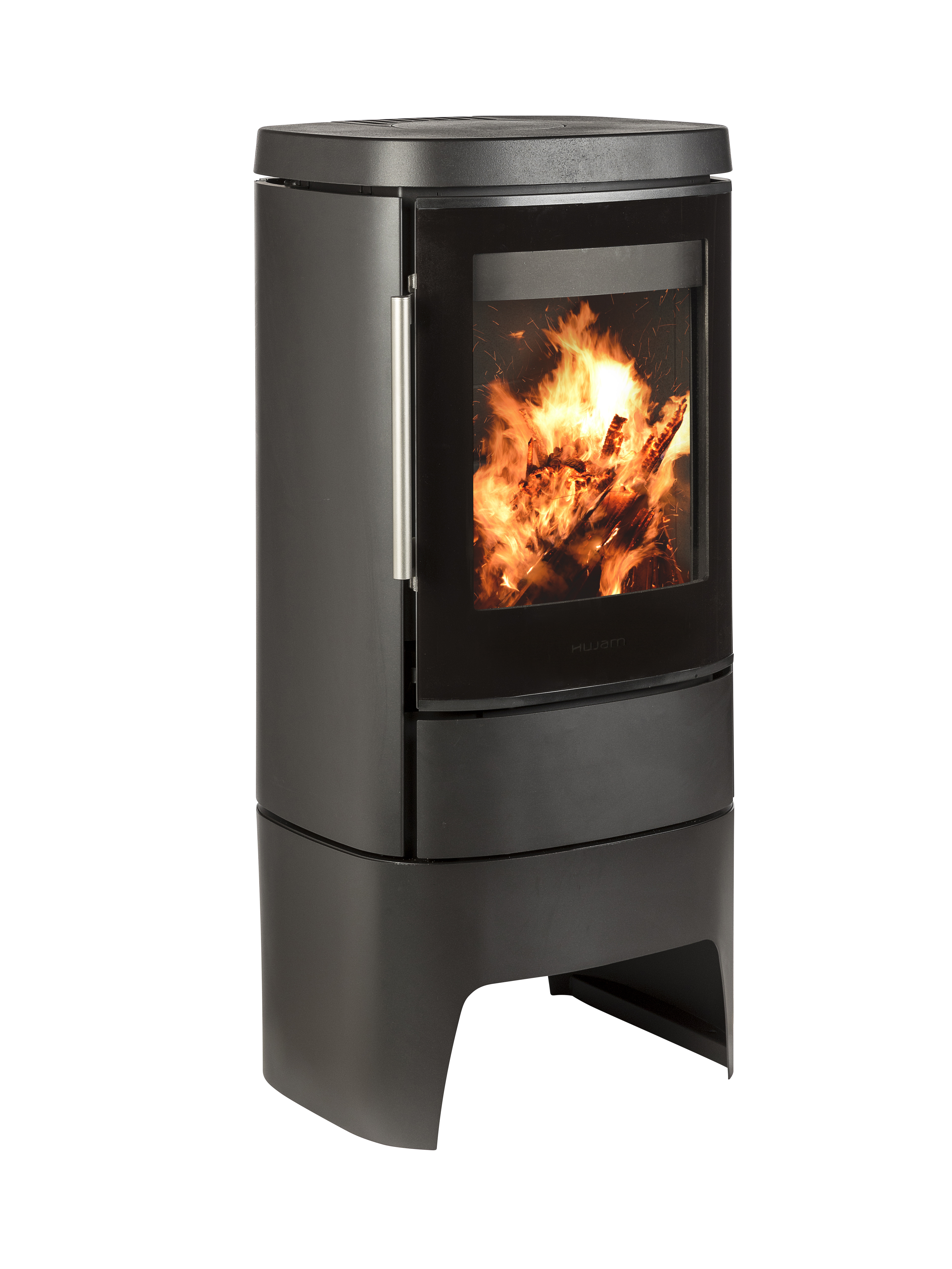 verschiedenen Sockelvarianten oder als wandhängend bestellbar. Der HWAM Autopilot (Verbrennungsautomatik) ist bei allen HWAM-Kaminöfen serienmäßig und im Preis inbegriffen. Erhältlich in den Farben grau oder schwarz. Als Zubehör sind eine Vorlegeplatte und ein Verbrennungsluftsystem (auch DIBt zertifitziert) erhältlich.