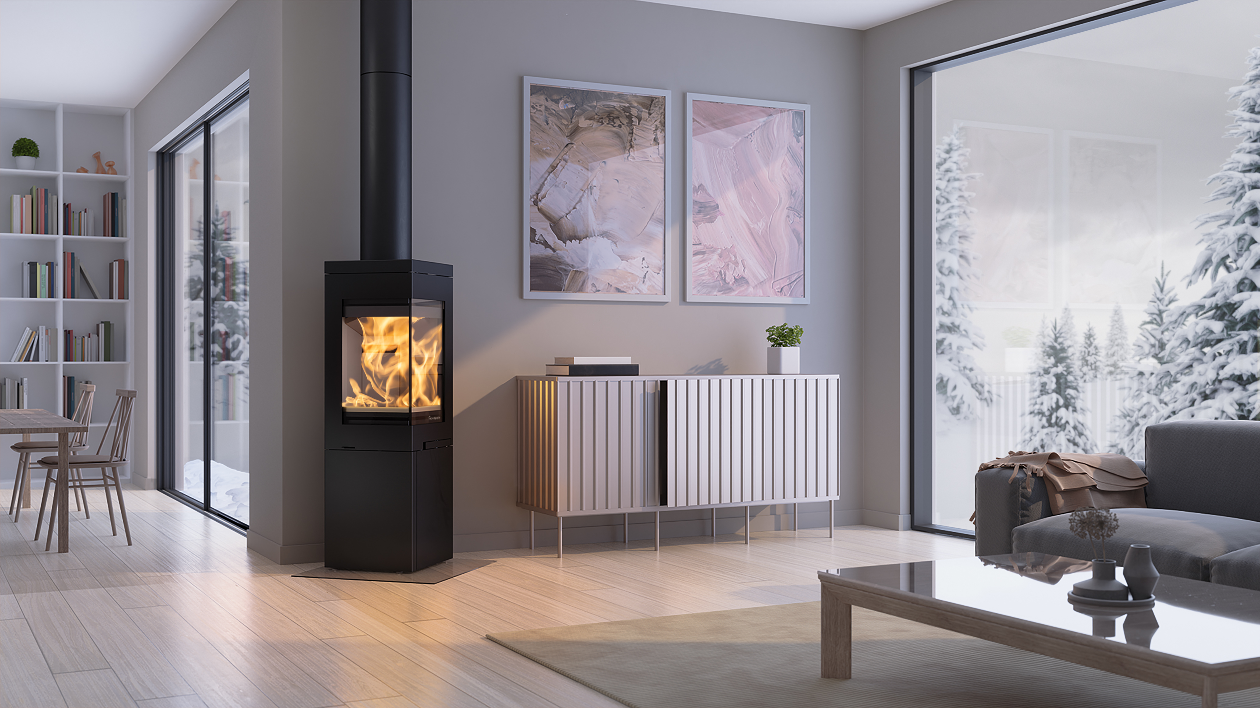 Stilvoller Kaminofen, der durch die große abgewinkelte Verglasung eine schöne Sicht auf das Flammenspiel garantiert. Der Kaminofen kann freistehend, in einer Ecke oder an einer Wand aufgestellt werden. Optional ist ein Wärmespeicher erhältlich. Als Zubehör sind eine Aschebox und eine Vorlegeplatte erhältlich. Der Abgasstutzen kann nur mit einem zusätzlichen Aufsatz zur Seitenmontage seitlich montiert werden.