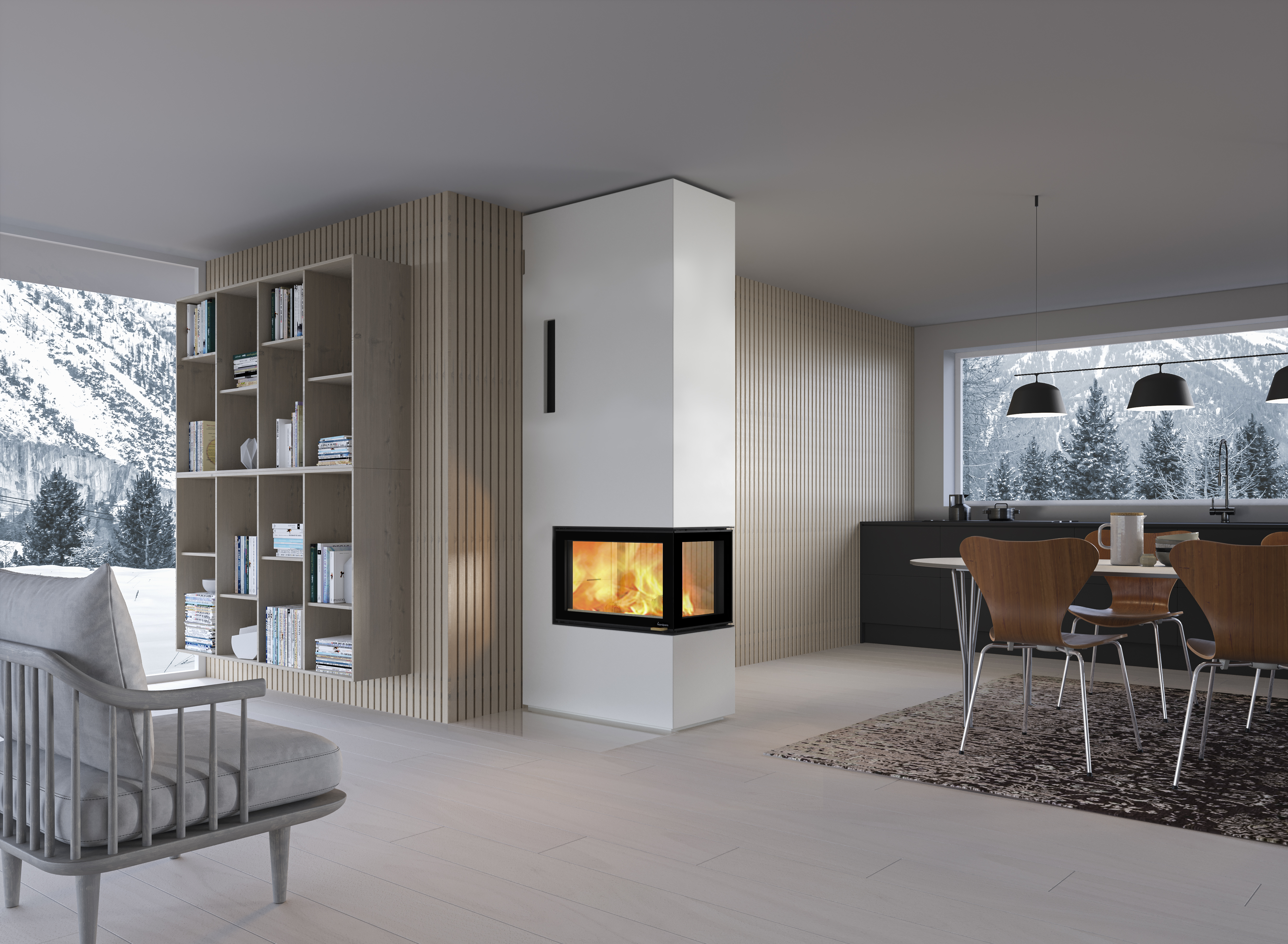 gut als Raumteiler eignet. Der Heizeinsatz verfügt bei allen Scheiben über