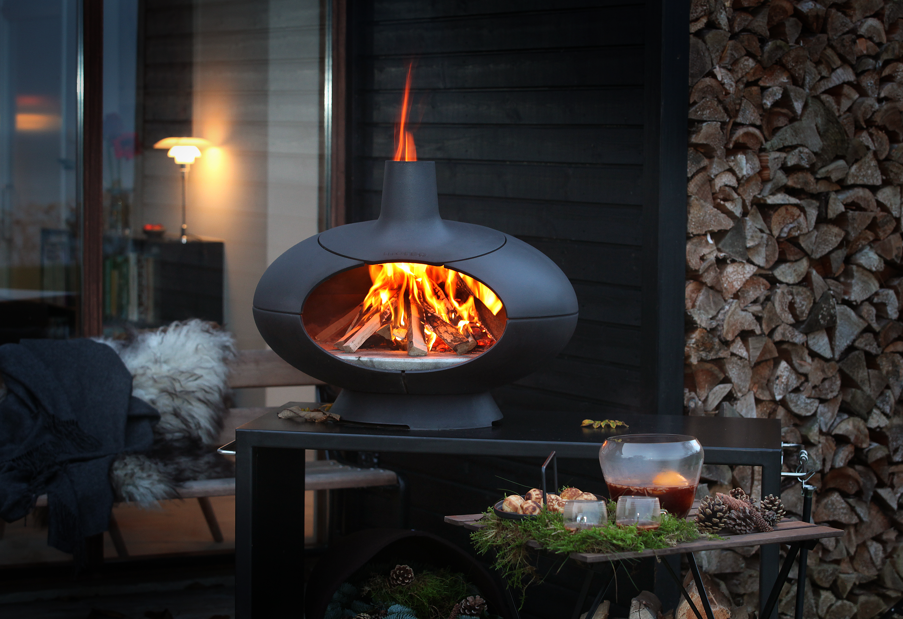 Forno - der Grill der fast alles kann! Gusseiserner Außenofen, inspiriert von traditionellen italienischen Steinöfen. Pizza, Steaks oder geräucherter Lachs, viele Gerichte können mit diesem Grill zubereitet werden. Der als Zubehör erhältliche Tuscan Grill verwandelt den Forno in einen normalen Grill. Platziert direkt über der Holzkohle, sorgt er für perfektes Röstaroma. Zum schmoren oder räuchern ist die optional erhältliche Forno-Tür erhältlich. Zudem erhältlich sind eine Feuerzange, Pizzaschaufel, Aschekratzer mit Blasrohr. Heben Sie Ihren Ofen auf die perfekte Höhe und kombinieren ihn mit einem Tisch mit Rädern. Gleichzeitig erhalten Sie einen schönen Aufbewahrungsort für das Brennholz.